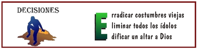 1. Nada ni nadie debe compartir el lugar que sólo a Dios le corresponde. Para asegurar esto, debes destruir lo que antes amabas, para que nunca regrese a tu vida. 2. Nada debe recordarnos nuestras antiguas costumbres. La sangre de Cristo nos rescató de nuestra vana manera de vivir (1 P. 1:18). 3. Mi compromiso de servir a Dios debe ser visible a todos. La madera, lo humano, debe ser ofrecido a Dios en forma irrevocable: leña para ser quemada, no madera para ser tallada y servir de adorno. |