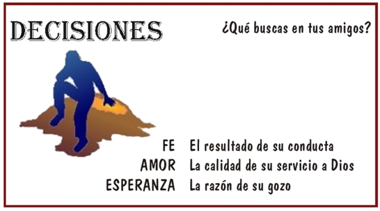 La Biblia habla de un cordón de tres dobleces que no se rompe pronto (Ec. 4:12). Aquí está un ejemplo de cómo puedes formar una amistad duradera: 1. Creyendo en el mismo Dios: Fe (Tit. 1:1,4). 2. Sirviendo al mismo Señor: Ministerio (Fil. 1:27). 3. Buscando la misma recompensa: Corona (2 Ti. 4:8). |
